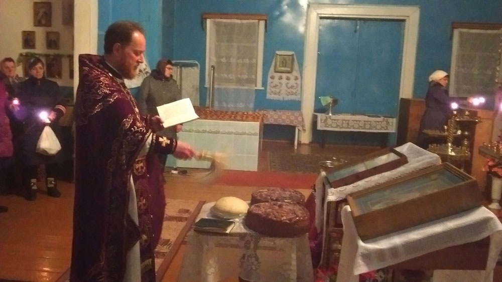 18.01 В канун праздника Богоявления настоятель совершил божественную литургию и чин освящения крещенской воды в Христо-Рождественском храме д. Прусы Стародорожского р-на