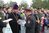 27.06 21-25 июня 2016 года в войсковой части 1235 (г. Пинск) прошел 11-ый военно-патриотический, спортивный слет православной молодежи, посвященный 900-летию преставления святителя Мины епископа Полоцкого и 75-летию подвига Советских пограничников в первых боях на государственной границе СССР в 1941году. По благословению Антония, епископа Слуцкого и Солигорского в слете приняла участие команда Минского областного кадетского училища под руководством руководителя отдела по взаимодействию с Вооруженными Силами и правоохранительными органами Слуцкой епархии протоиерея Александра Пигаля и подполковника запаса Андрея Семенихина. 22 июня в 4:00 участники слета вместе молились за Божественной литургией. Возглавил богослужение архиепископ Пинский и Лунинецкий Стефан. По окончании Литургии участники слета возложили венки на Аллее героев Пинского пограничного отряда к памятнику воинам-защитникам. Далее все праздничным шествием прошли к мемориалу в честь освободителей Пинска, где также возложили венки. Участники слета жили по армейскому распорядку. В рамках программы слета участники участвовали в различных соревнованиях: разборка и сборка автомата АК-74, стрельба из пистолета, викторина, военизированная эстафета, смотр песни и строя, подтягивание, бег на 100 м. Команда Слуцкой епархии заняла 1-ые места в эстафете и смотре песни и строя. Культурная программа слета включала в себя: посещение музея Белорусского Полесья, экскурсия по Пинску, встреча с полковником запаса Ксендзык А. Н., посещение пограничной заставы "Сварынь", показательное выступление кинологов пограничного отряда, выступление вокальной группы "Единство". 11.06 Руководитель отдела по взаимодействию с Вооруженными Силами и правоохранительными органами Слуцкой епархии протоиерей Александр Пигаль принял участие в тожественных мероприятиях, посвященных принятию воинской присяги молодым пополнением в 8 бригаде войск радиационной, химической и биологической защиты Вооруженных Сил РБ. Перед принятием присяги священник провел беседу с родителями новобранцев. Во время митинга протоиерей Александр поздравил всех присутствующих со знаменательным днем в жизни военнослужащих.