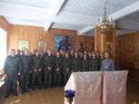 9.06 В 8 бригаде войск радиационной, химической и биологической защиты Вооруженных Сил РБ в воинском храме прошла встреча настоятеля с молодым пополнением. Протоиерей Александр рассказал об истории воинского храма, о богослужениях, проводимых а бригаде. В конце беседы каждому военнослужащему была вручена икона Божией Матери "Почаевская" |
