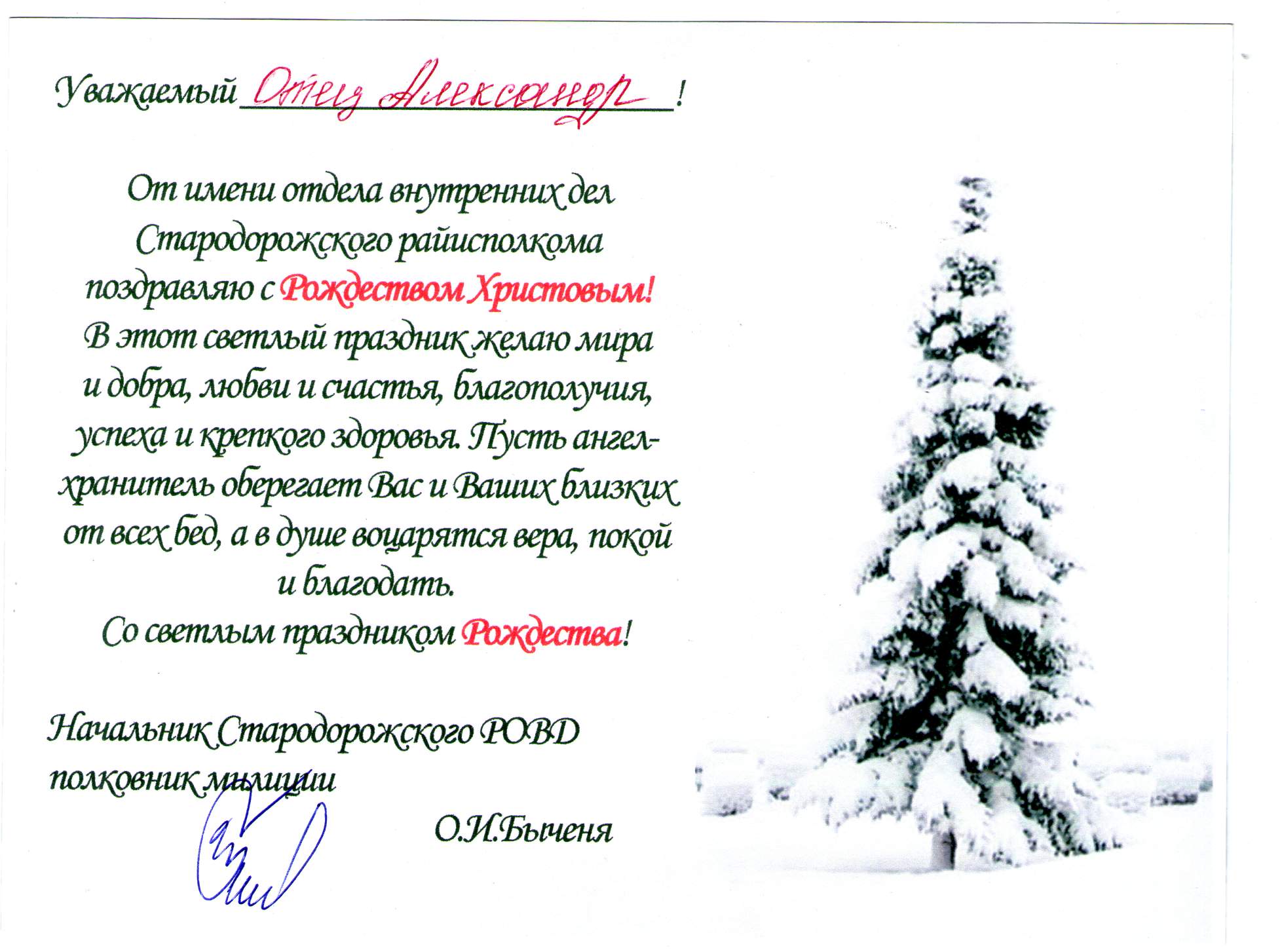 13.01 Некоторая корреспонденция руководителя отдела: - поздравление епископа Слуцкого и Солигорского Антония - письмо Почетного Патриаршего Экзарха митрополита Филарета - письмо архиепископа Брестского и Кобринского Иоанна - поздравление протоиерея Николая Коржича - поздравление протоиерея Сергия Кузьменкова - поздравление полковника милиции Олега Бычени - поздравление полковника Олега Германова 2.01 В Слуцком епархиальном управлении прошла встреча епископа Слуцкого и Солигорского Антония с протоиереем Александром Пигалем и командиром 8-й бригады радиационной, химической и биологической (РХБ) защиты Министерства обороны РБ полковником Олегом Германовым. Во время встречи обсуждались вопросы празднования юбилейных дат в бригаде.