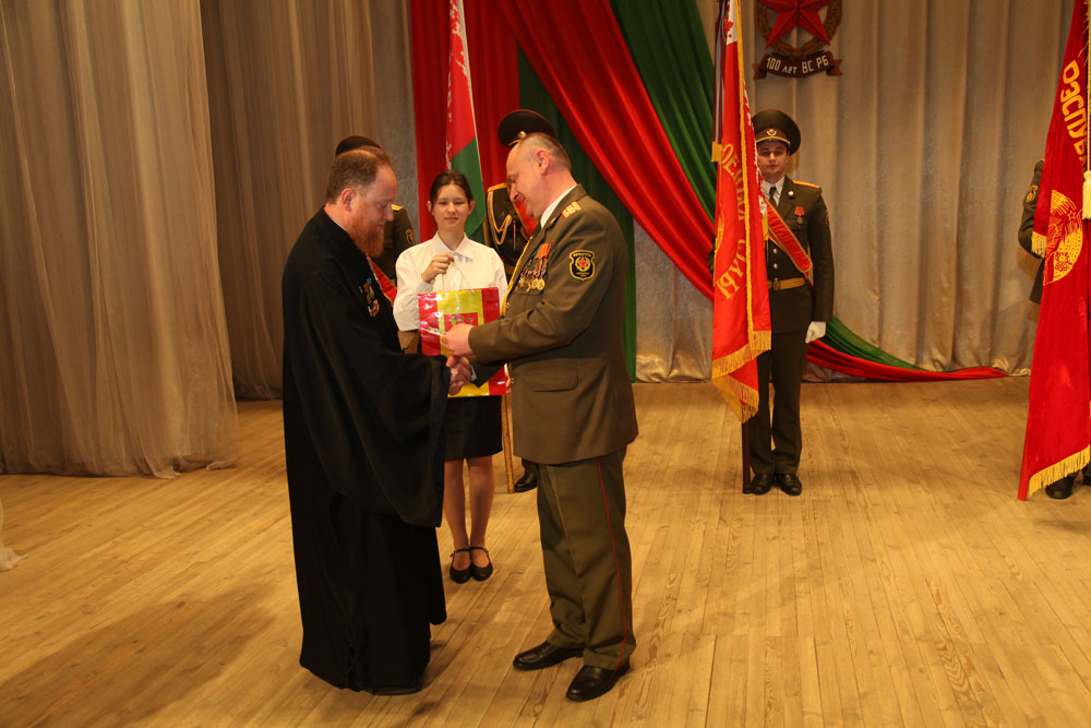 2.03 Руководитель отдела Слуцко-Солигорской епархии по взаимодействию с Вооруженными силами и правоохранительными органами протоиерей Александр Пигаль принял участие в праздничных мероприятиях, посвященных предстоящему Дню белорусской милиции. 2 марта в районных центрах прошли торжественные собрания, посвященные 101-ой годовщине со дня образования милиции. Протоиерей Александр поздравил правоохранителей г. Старые Дороги и г. Слуцка. Обращаясь со словами поздравления к присутствующим священник отметил, что доблестная милиция охраняет храмы, следит за порядком во время массовых мероприятий. Духовенство Слуцко-Солигорской епархии благодарно руководству и личному составу РОВД и с усердием каждодневно молится за наше воинство. Руководитель отдела пожелал сотрудникам крепости духовной и телесной, благополучия и успехов в служении на благо родной Беларуси. Торжественные мероприятия закончились праздничным концертом. Также протоиерей Александр Пигаль направил поздравления начальникам и личному составу Солигорского, Клецкого, Копыльского, Любанского и Несвижского РОВД, а также УВД Миноблисполкома. 22.02 Торжественное собрание и праздничный концерт, посвящённые Дню защитников Отечества и 100-летию Вооруженных Сил РБ прошли в Стародорожском Доме культуры. В числе приглашённых - ветераны труда и Вооружённых сил, военнослужащие воинских частей г. Старые Дороги, руководство города, представители трудовых коллективов и молодёжи. В поздравительном слове руководитель отдела Слуцко-Солигорской епархии по взаимодействию с Вооруженными силами и правоохранительными органами протоиерей Александр Пигаль отметил, что сегодня Церковь и Армия, как и прежде, вновь объединены в служении народу и долг защиты Родины признается не только государством, но и Церковью. Священнослужитель пожелал всем защитникам Отечества крепости сил, мужества, терпения и благословенных успехов в совместных трудах во благо родной Беларуси. Во время торжественного собрания был зачитан приказ о награждении протоиерея Александр медалью "100 год Узброеным Сілам Рэспублікі Беларусь", а командир 8-й бригады радиационной, химической и биологической (РХБ) защиты Министерства обороны РБ полковник Олег Германов вручил награду 12.02 Руководитель отдела Слуцко-Солигорской епархии по взаимодействию с Вооруженными силами и правоохранительными органами протоиерей Александр Пигаль поздравил в г. Минске ветерана ВОВ, полковника в отставке, почетного солдата Вооруженных Сил и 8 бррхбз Сергея Даниловича Савенкова с 94-летием